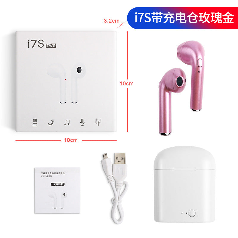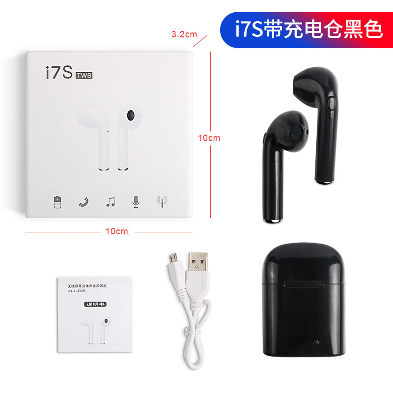 i7 i7s TWS Bluetooth イヤフォン イヤーバッド ヘッドセット ワイヤレス ヘッドフォン マイク付き iPhone、Xiaomi、Huawei 用 充電ボックス付き
